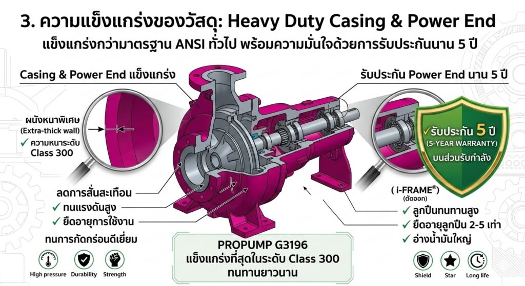 นี่คือส่วนที่ PROPUMP G3196 แข็งแกร่งกว่าปั๊ม ANSI ทั่วไปอย่างชัดเจน: