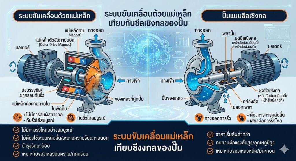 Magnetic Drive vs. Mechanical Seal: เลือกปั๊มเคมีแบบไหนที่ใช่สำหรับโรงงานคุณ?